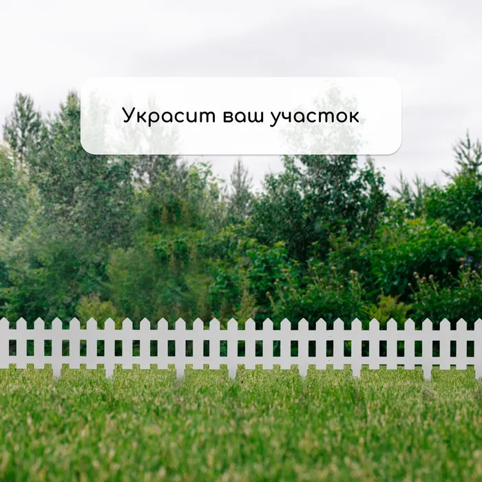 Ограждение декоративное, 30 × 196 см, 4 секции, пластик, белое, «Палисадник» — Характеристики