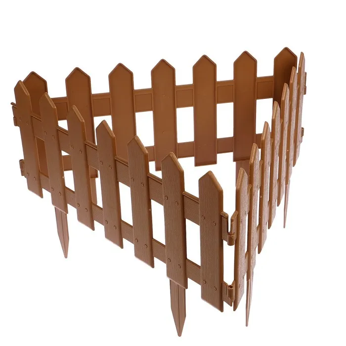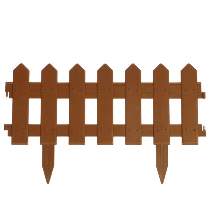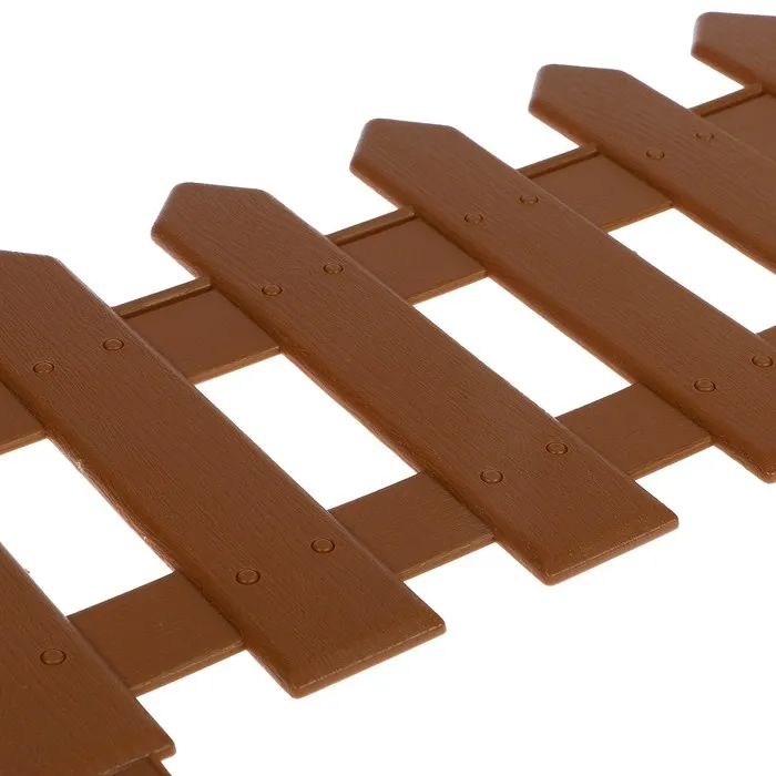 Ограждение декоративное, 30 × 196 см, 4 секции, пластик, коричневое, «Палисадник» — Характеристики