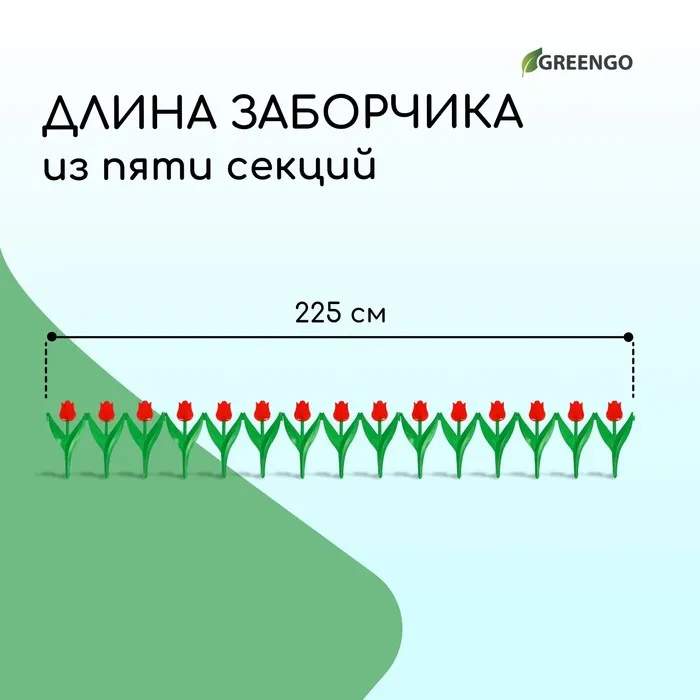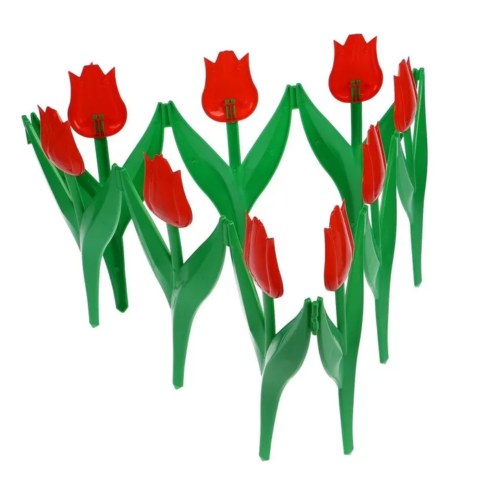 Ограждение декоративное, 30×225 см, 5 секций, пластик, красный цветок, «Тюльпан» — Характеристики