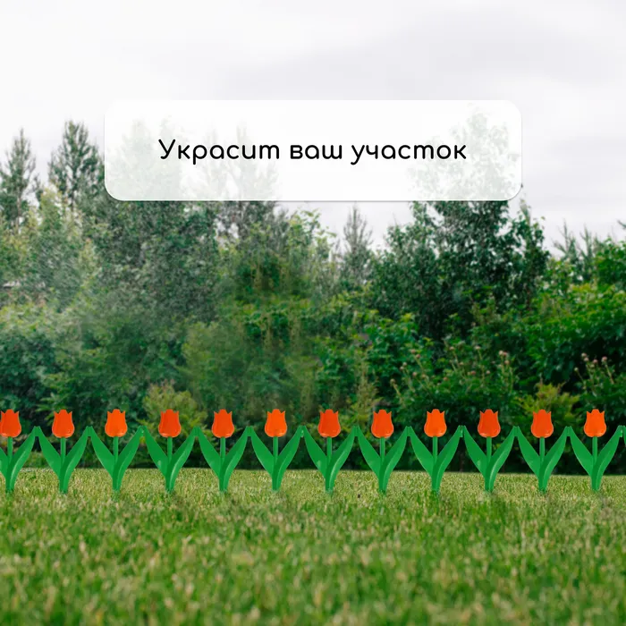Ограждение декоративное, 30×225 см, 5 секций, пластик, оранжевый цветок, «Тюльпан» — Характеристики