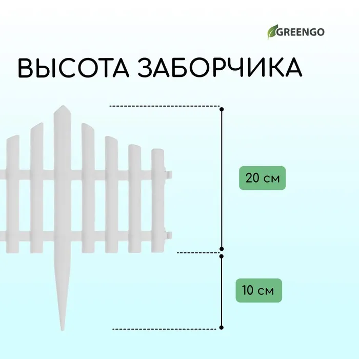 Ограждение декоративное, 30×300 см, 5 секций, пластик, белое, Greengo — Характеристики