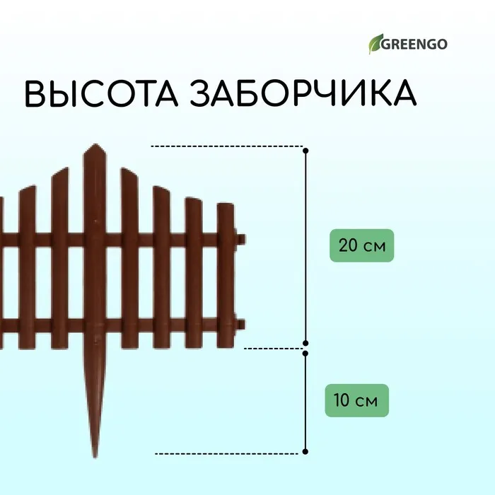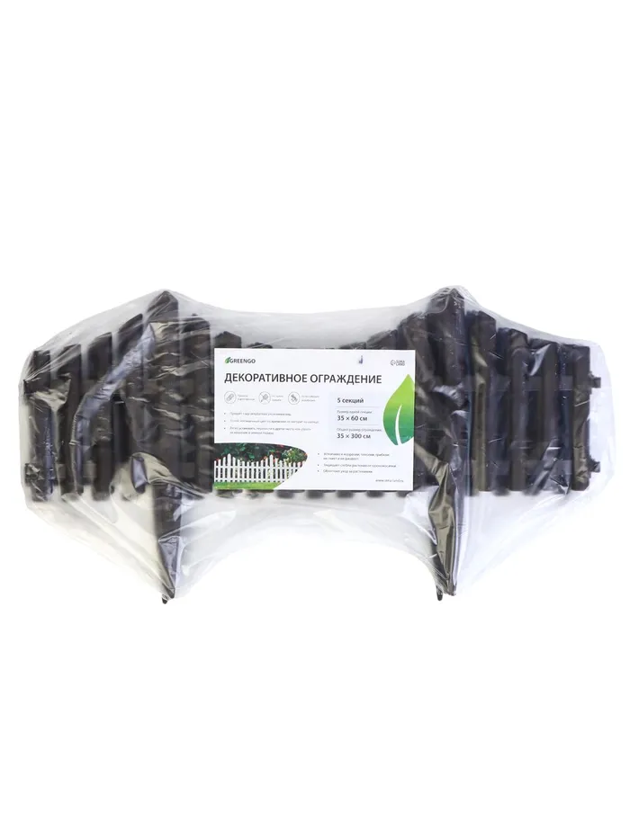 Ограждение декоративное, 30×300 см, 5 секций, пластик, коричневое, Greengo — Характеристики