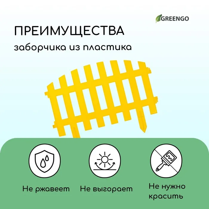 Ограждение декоративное, 35 × 210 см, 5 секций, пластик, жёлтое, RENESSANS, Greengo — Характеристики