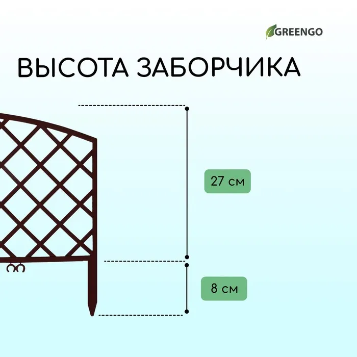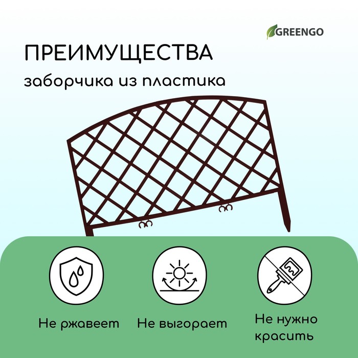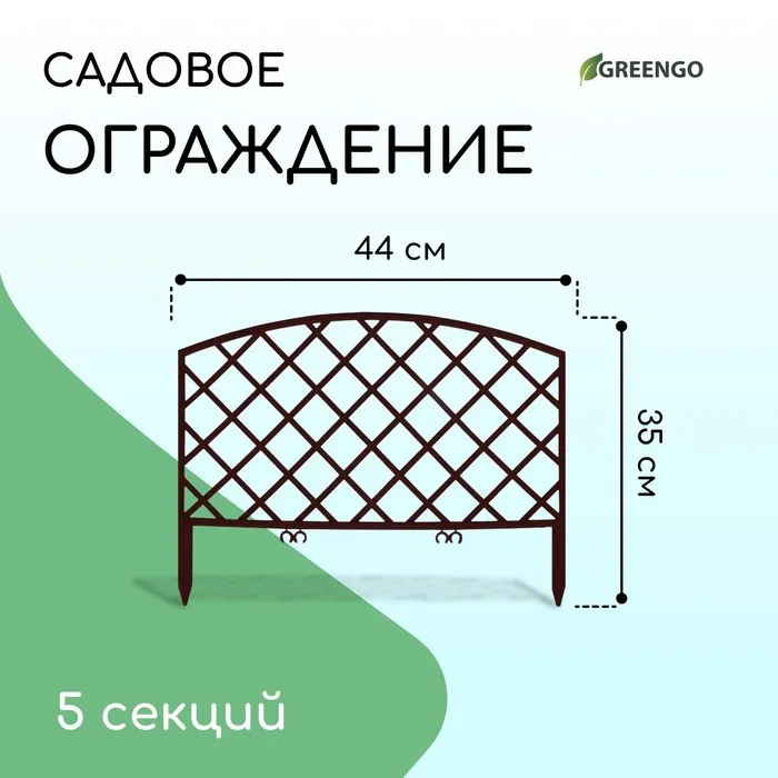 Ограждение декоративное, 35 × 220 см, 5 секций, пластик, коричневое, ROMANIKA, Greengo — Характеристики