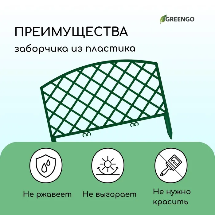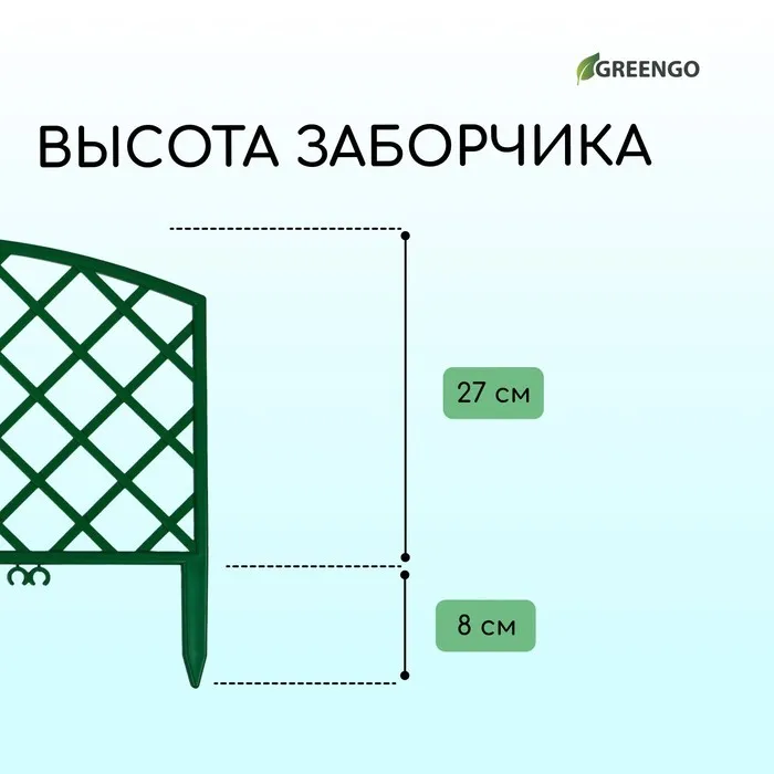Ограждение декоративное, 35 × 220 см, 5 секций, пластик, зелёное, ROMANIKA, Greengo — Характеристики