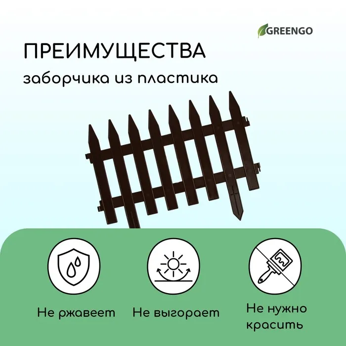 Ограждение декоративное, 35×210 см, 5 секций, пластик, коричневое, GOTIKA, Greengo — Характеристики