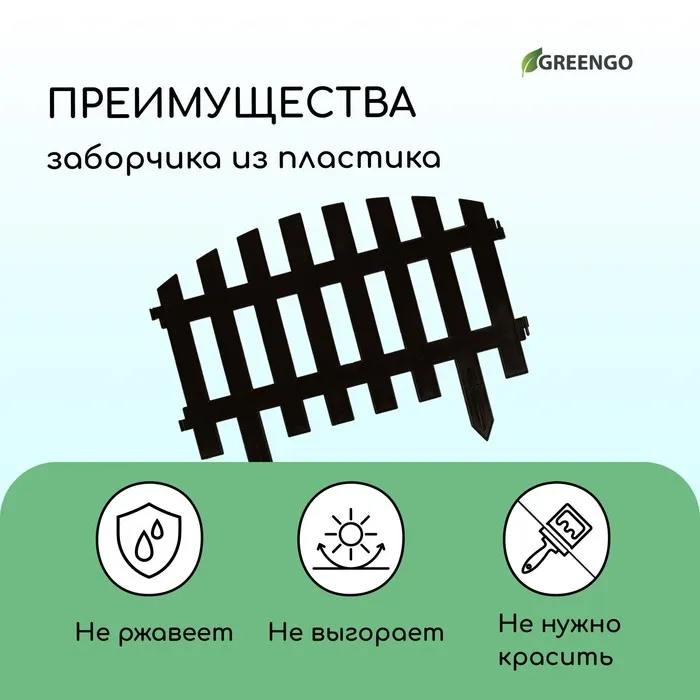 Ограждение декоративное, 35×210 см, 5 секций, пластик, коричневое, RENESSANS, Greengo — Характеристики