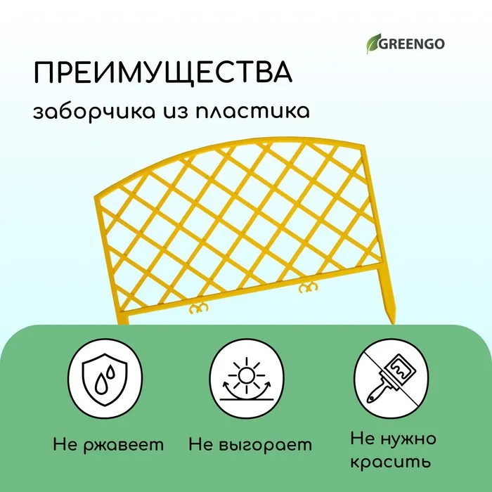 Ограждение декоративное, 35×220 см, 5 секций, пластик, жёлтое, ROMANIKA, Greengo — Характеристики