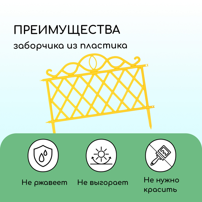 Ограждение декоративное, 36×42 см, пластик, жёлтое — Характеристики