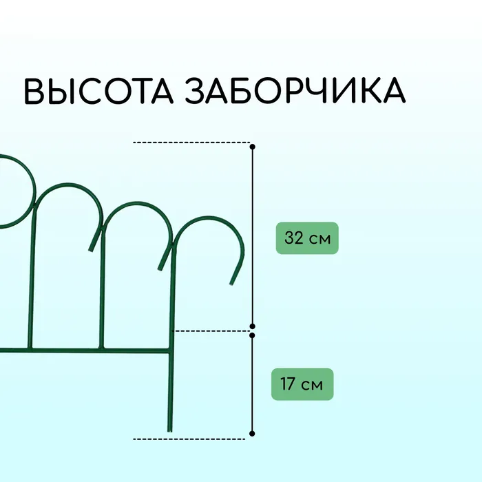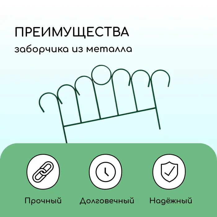 Ограждение декоративное, 49×415 см, 5 секций, металл, зелёное, «Восход» — Характеристики