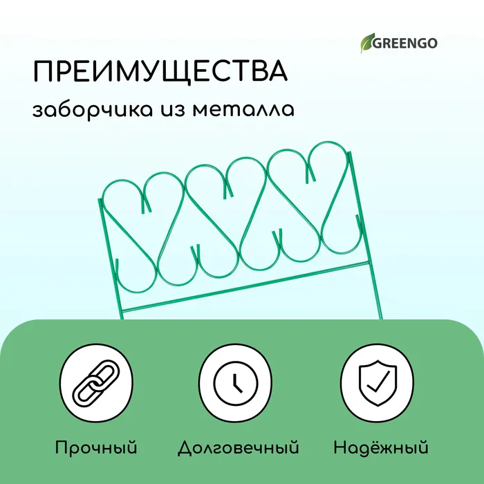 Ограждение декоративное, 54×340 см, 5 секций, металл, зелёное, «Изящный» — Характеристики