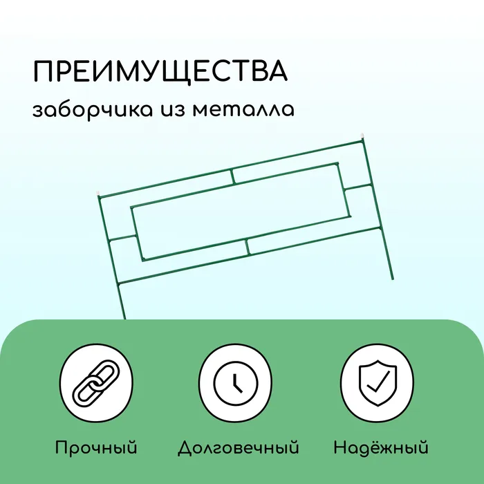 Ограждение декоративное, 55×500 см, 5 секций, металл, зелёное, «Газонный» — Характеристики