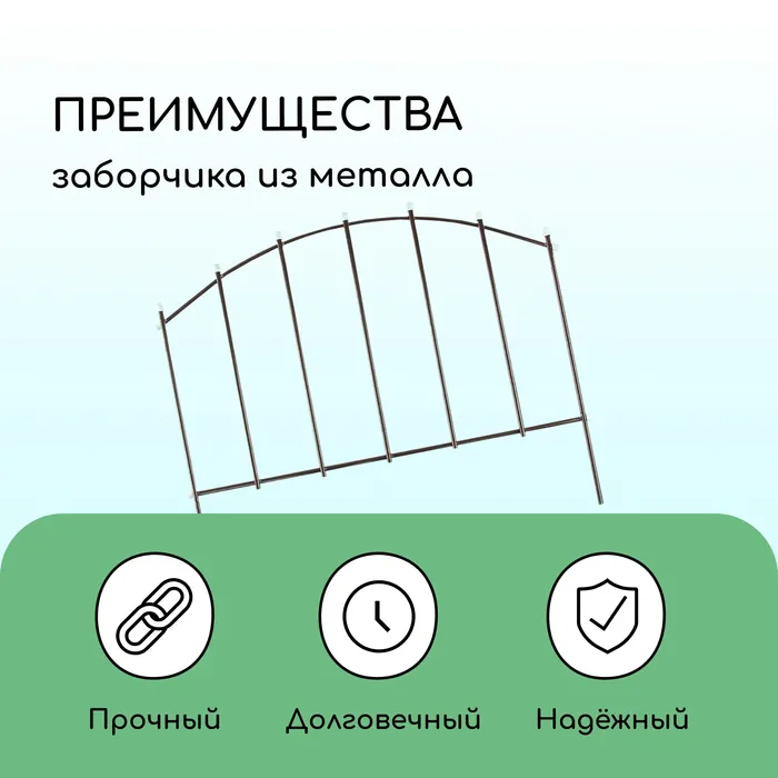 Декоративный заборчик для сада изготовлен из качественного и прочного металла, который устойчив к воздействиям окружающей среды. Нет необходимости убирать садовый бордюр на зиму.