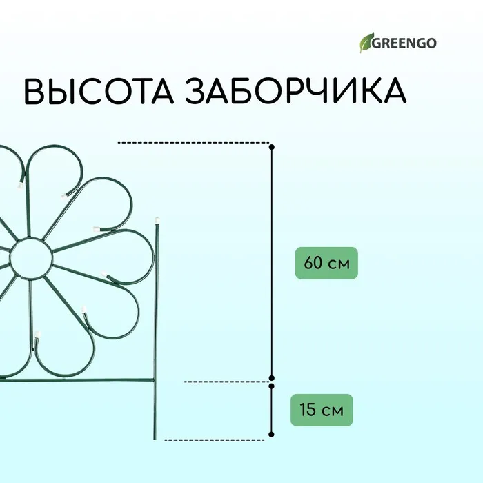 Ограждение декоративное, 75×305 см, 5 секций, металл, зелёное, «Ромашка» — Характеристики