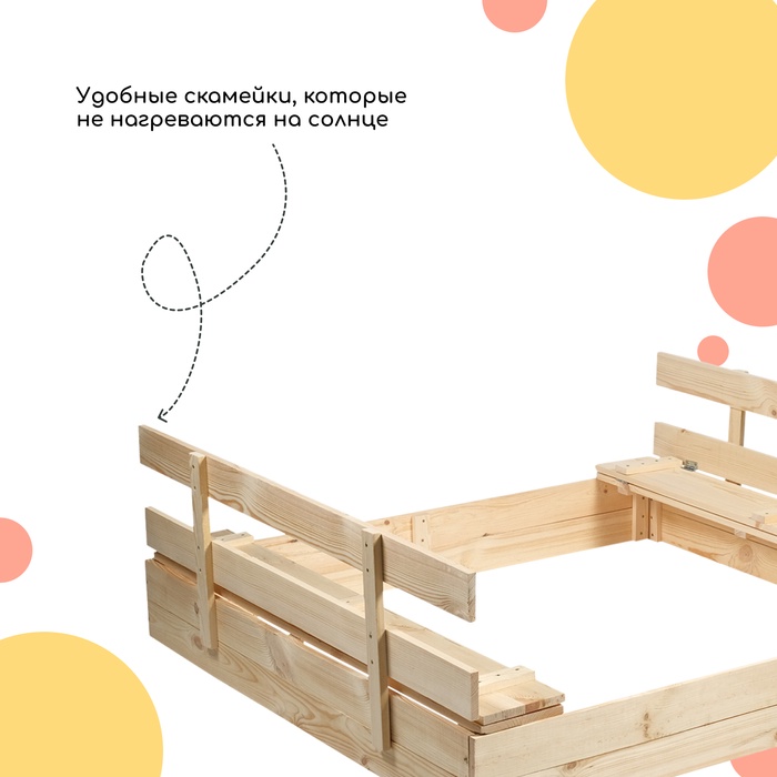 Ограждение для песка деревянное, с крышкой, 150×140×18 см, без покраски, лавочки (2 шт.), Greengo — Характеристики