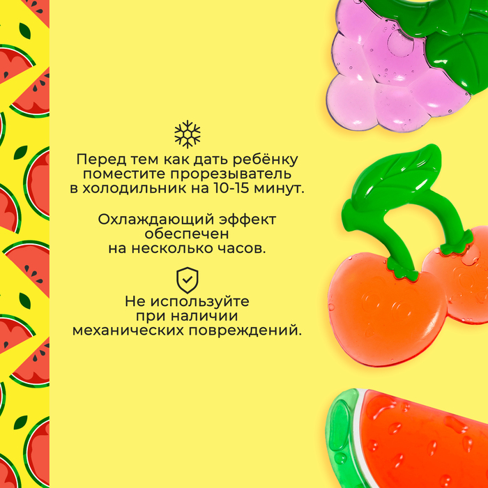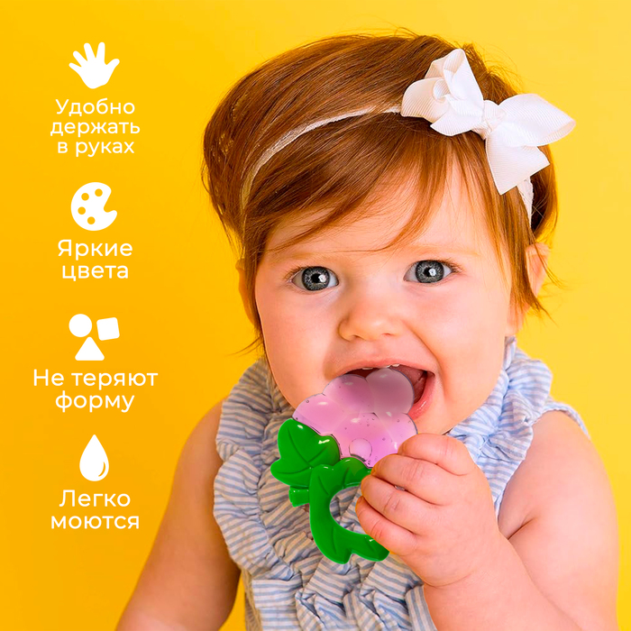 - Охлаждающие прорезыватели смягчают боль, уменьшают отёк и зуд в ротовой полости.