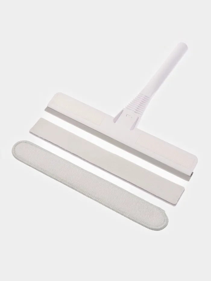 Швабра подходит для мытья окон, стеклянных дверей, витрин и других гладких поверхностей. Микрофибра эффективно удаляет грязь и разводы, а поролоновая насадка справляется с более сложными загрязнениями. Сборная ручка позволяет работать без стремянки, а компактная конструкция делает хранение простым.