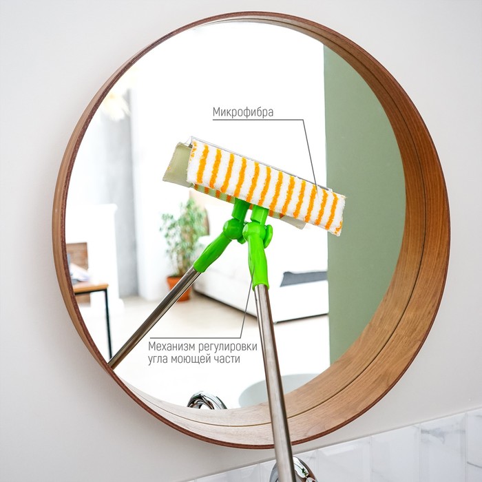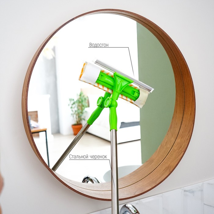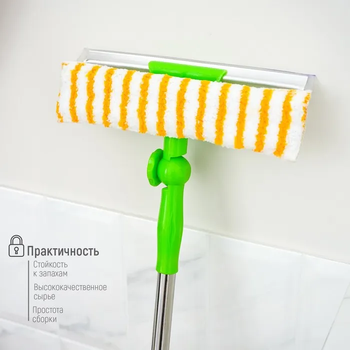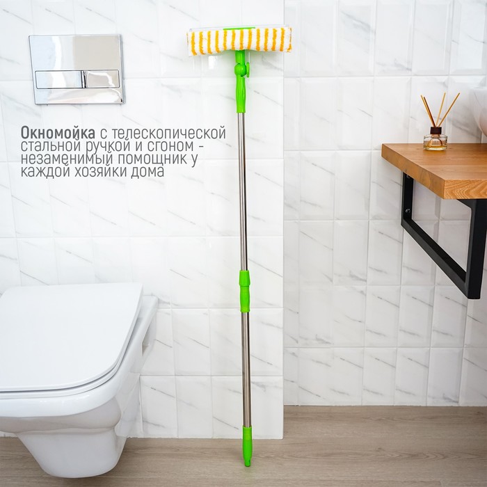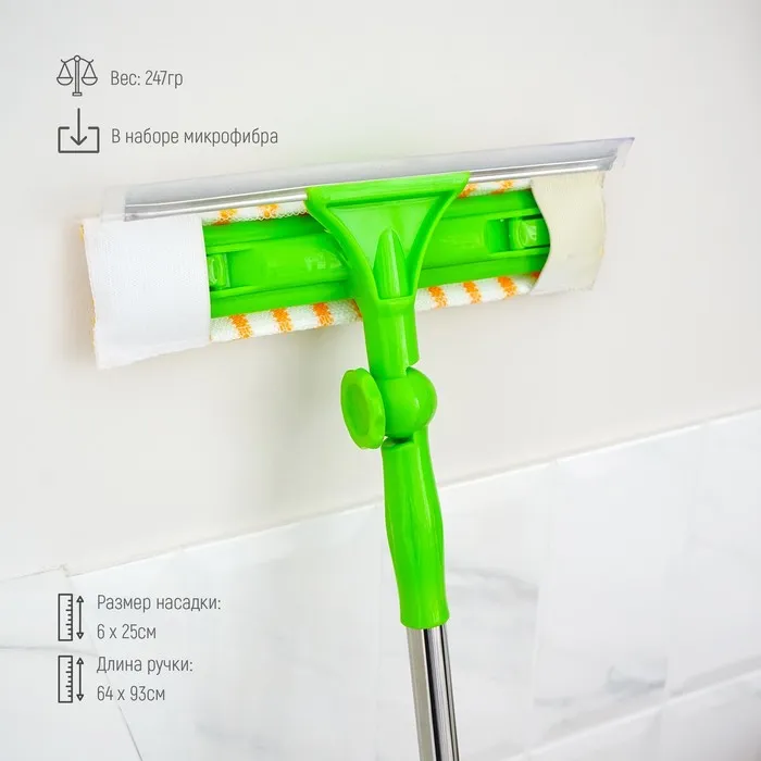 Окномойка с телескопической стальной ручкой и сгоном Доляна, 25×64(93) см, микрофибра — Характеристики