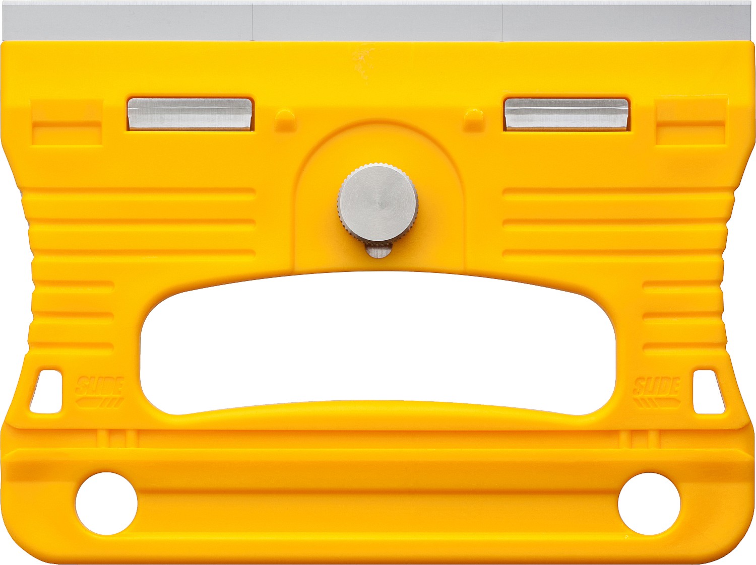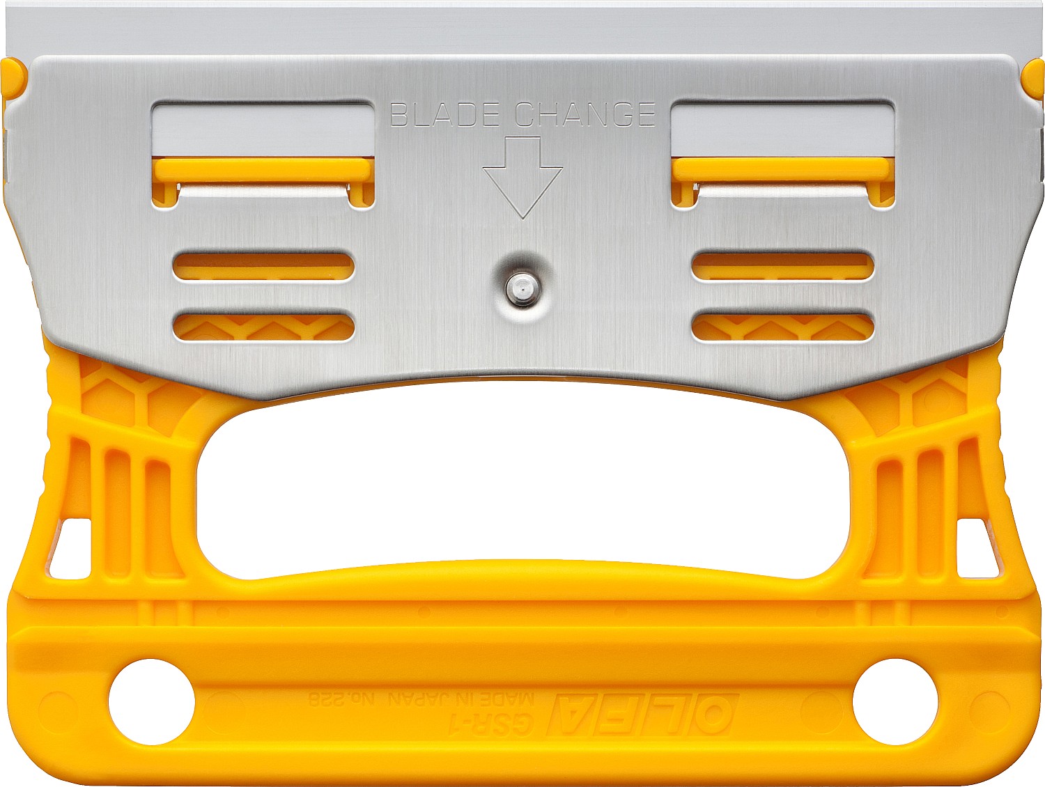 Тонкая конструкция скребка OLFA GSR-1 позволяет наклонять скребок максимально к плоской стеклянной поверхности. Рукоятка и защитная крышка лезвия изготовлены из усиленного фибергласом пластика который известен своей прочностью, жесткостью и устойчивостью к ацетону. Не только лезвие, но и пластина, удерживающая лезвие, и винт изготовлены из нержавеющей стали, поэтому скребок для стекла идеально подходит для работы с водой и жидкостью для мытья посуды.