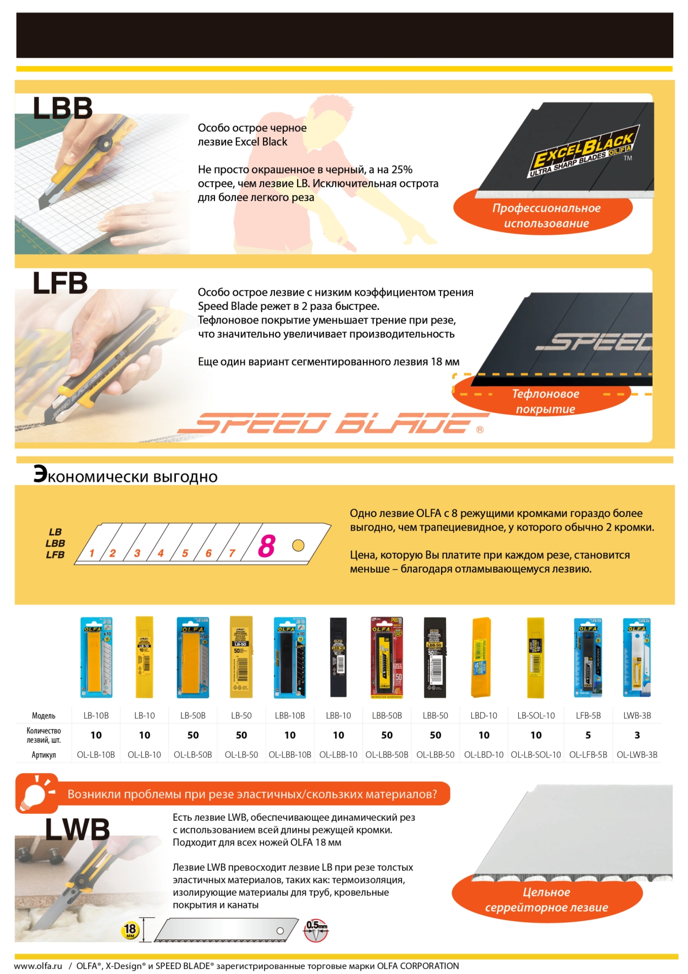 OLFA 18 мм, 50 шт, в пластиковом кейсе + блистер, сегментированные лезвия (OL-LB-50B)