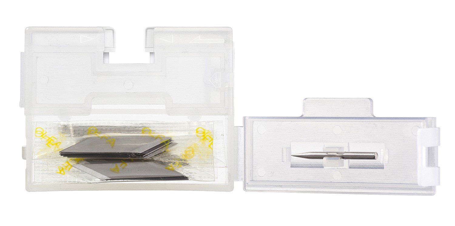 Независимо от того, являетесь ли Вы профессиональным художником, Вы по достоинству оцените точность и качество лезвий OLFA KB-5. Лезвия изготовлены из высококачественной японской инструментальной стали и профессионально заточены для обеспечения превосходной остроты и непревзойденной долговечности режущей кромки. В комплект входит 30 сменных лезвий, а также игла для проколов. Упакованы в удобный кейс для переноски и хранения.