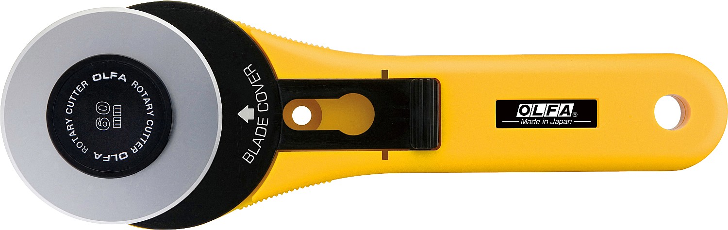 Поставляется с лезвием OLFA RB60, обеспечивающим вдвое больший объем резки по сравнению со стандартным лезвием. Большой диаметр, 60 мм, разрезает до двенадцати слоев хлопчатобумажной ткани за один проход