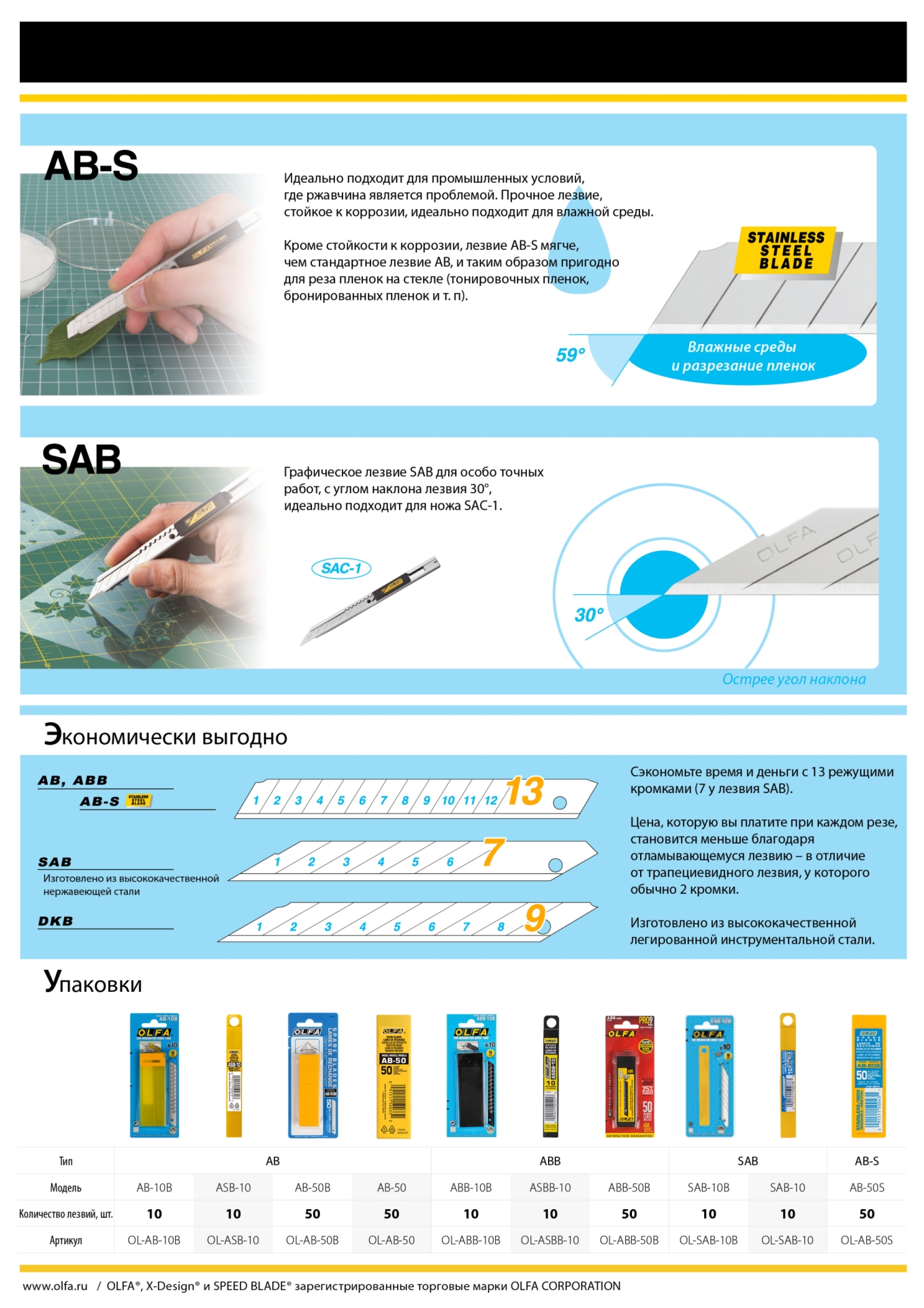 Используются в качестве сменных рабочих элементов в ножах с шириной направляющей пластины 9 мм. Применяются для резки картона, бумаги, гибкой пластмассы, пленки, обоев.