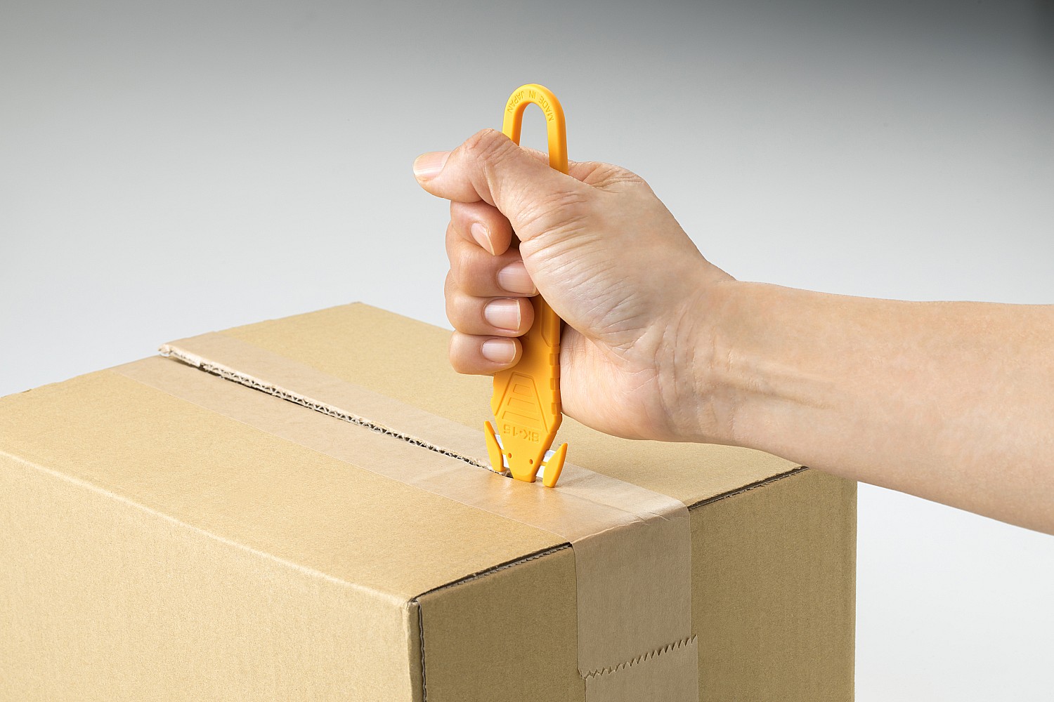 Используется для удобного открывания картонных коробок, резки стретч-пленки, пластиковых лент, скотча.