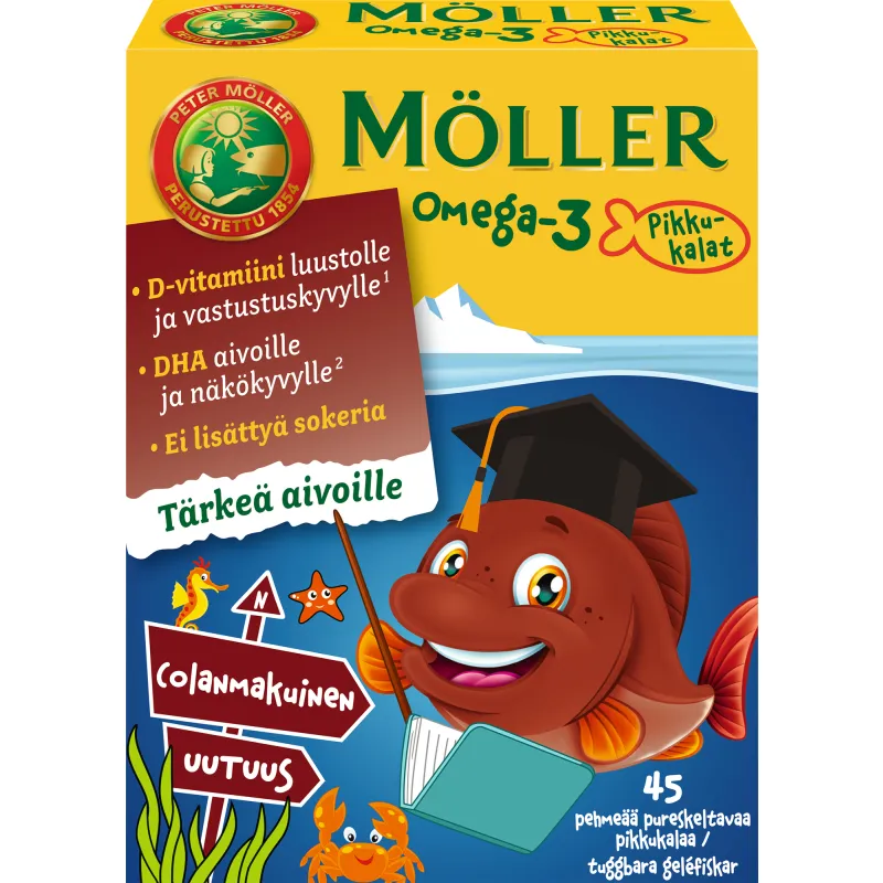Упаковка содержит 45 жевательных капсул со вкусом колы. Благодаря своему формату, капсулы легко и приятно употреблять, даже детям они придутся по вкусу. Омега-3 Möller – это высокое качество и надежность, проверенные временем.