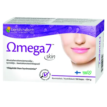 Omega 7 Skin Bertils - это сочетание масла семян черной смородины и масла облепихи, содержит большое количество незаменимых жирных кислот, необходимых для хорошего самочувствия и здоровья кожи. Масло обогащено бета-каротином, образованный из него витамин А поддерживает хорошее самочувствие кожи, а также поддерживает нормальный иммунитет. Витамин Е, естественным образом содержащийся в маслах косточек ягод, защищает кожу от окислительного стресса благодаря своим антиоксидантным свойствам и все клетки организма, необходимые для нормальной работы сердца и глаз. Питаемая изнутри кожа чувствует себя и выглядит великолепно.
