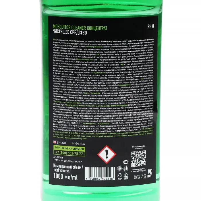 Назначение: Стеклоомыватель летний предназначен для очистки стекол в летний период. Эффективно удаляет следы смолы древесных почек, соль, нефтяную пленку и другие дорожные загрязнения. Не оставляет бликов, разводов на стекле. Средство безвредно для лакокрасочного покрытия, резиновых и пластиковых деталей. Разбавить средство с водой в пропорции 1:4. Готовый раствор залить в бачок стеклоомывателя.