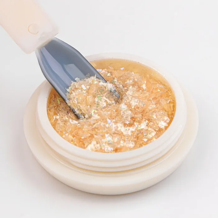 Опаловая пудра для декора в жёлтом цвете от Queen Fair — это идеальный способ добавить уникальные акценты в ваш маникюр. Этот декоративный элемент позволяет создавать эффектный дизайн ногтей с игрой света и насыщенными оттенками.