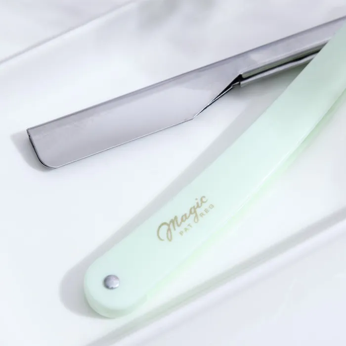 - Главное – держать лезвие под углом около 30 градусов относительно поверхности лица и очень легко надавливать на кожу.
