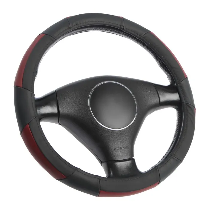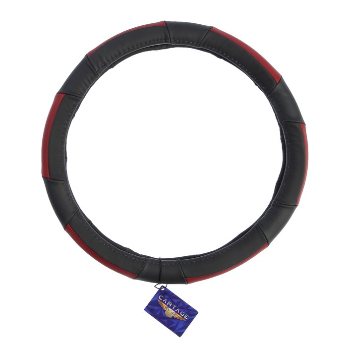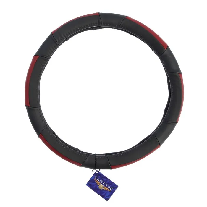 Оплетка на руль Cartage, натуральная кожа, размер 38 см, черно-красный