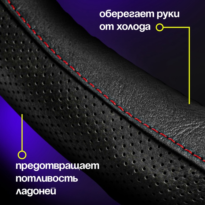 - препятствует скольжению и обеспечивает удобный хват, что исключает прокручивание руля во время манёвра и повышает безопасность на дороге;
