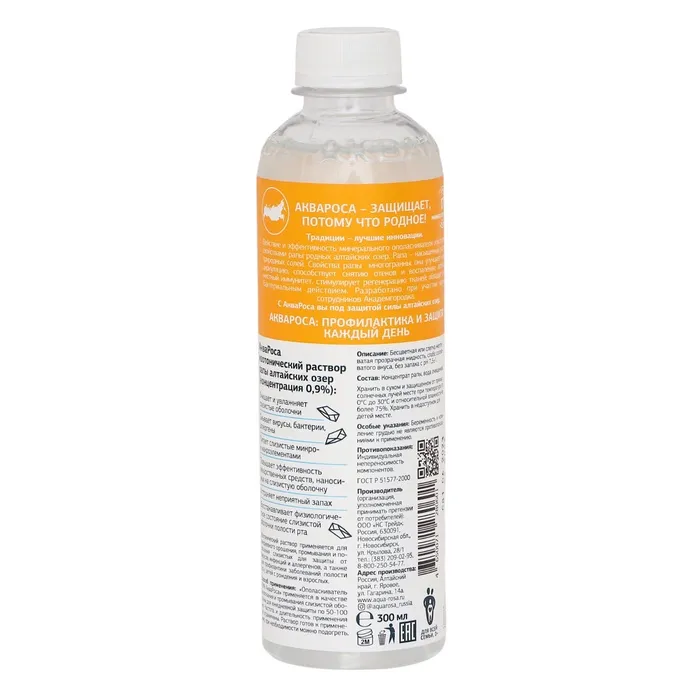 Ополаскиватель минеральный «АкваРоса» — это изотонический раствор (0,9%) озерной соли (рапы) объемом 300 мл. Используется в качестве «Запаски» к спреям «АкваРоса» и как самостоятельное средство. Раствор переливайте — 10 спреев получайте! Разрешен детям с рождения, беременным и кормящим женщинам, 100% натурально.
