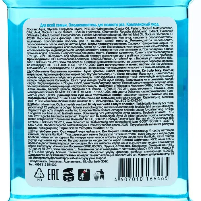 Ополаскиватель для полости рта «Для всей семьи» с морозной свежестью — идеальное решение для заботы о здоровье зубов и дёсен всей семьи. Этот продукт объёмом 350 мл обеспечивает эффективное очищение и освежение дыхания благодаря активным компонентам, таким как экстракты ромашки и календулы.