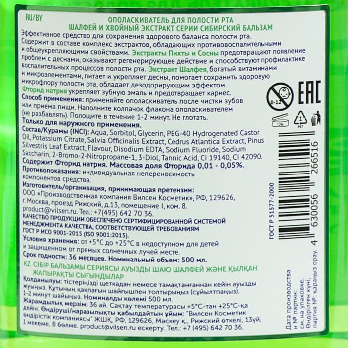 Состав: Aqua, Sorbitol, Glycerin, PEG-40 Hydrogenated castor Oil, Potassium Citrate, Salvia Officinalis Extract, Cedrus Atlantica Extract, Pinus Silvestris Leaf Extract, Flavour, Disodium EDTA, Sodium Fluoride, Sodium Saccharin, 2-Bromo-2-Nitropropane-1, 3-Diol, Tannic Acid, CI 19140, CI 42090.