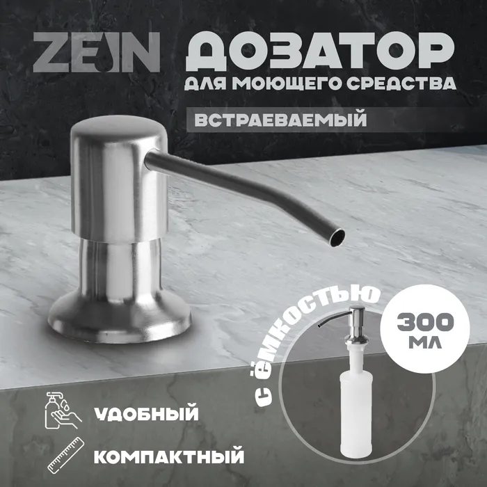 Дозатор для моющего средства ZEIN Z3615, на мойку, встраиваемый, сатин