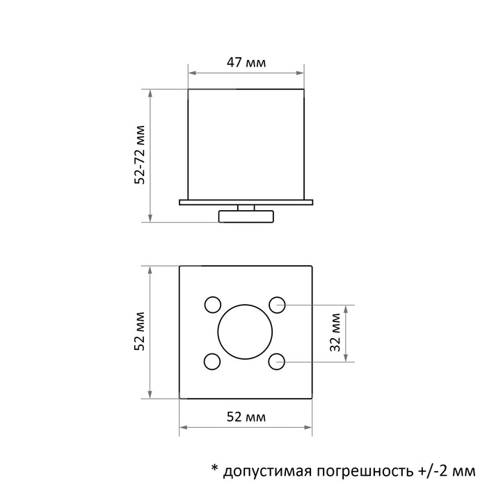 Опора квадратная Н=52 мм, цвет матовый хром — Характеристики