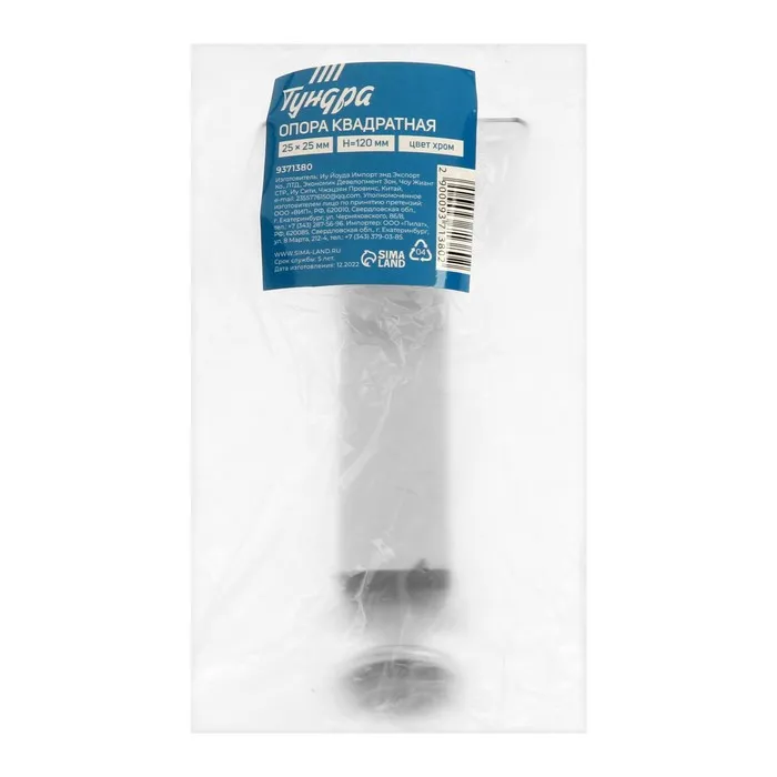 Опора квадратная OKV001CR ТУНДРА, d=25×25 мм, H=120 мм, цвет хром — Характеристики
