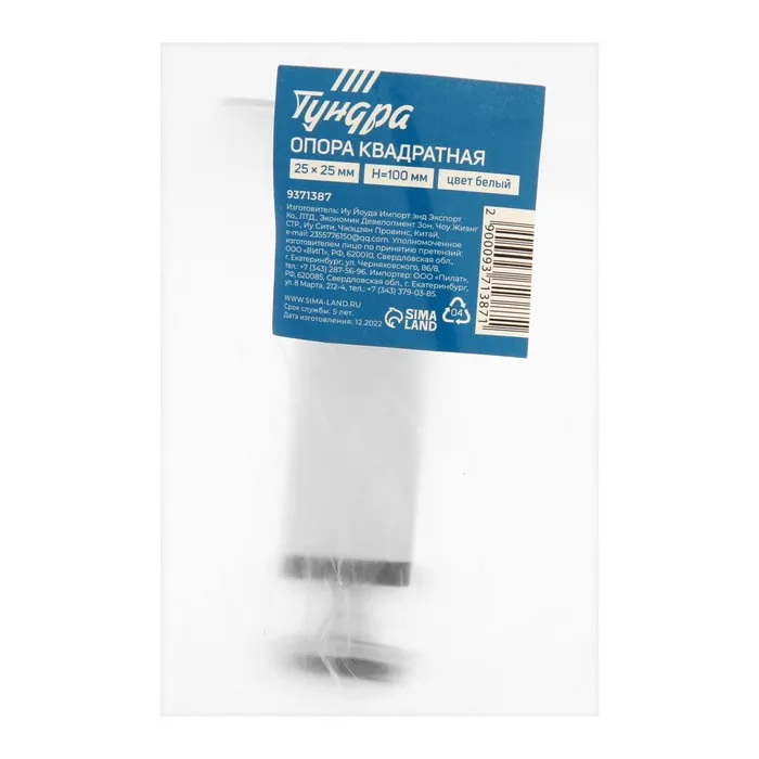 Опора квадратная OKV001WH ТУНДРА, d=25×25 мм, H=100 мм, белая — Характеристики