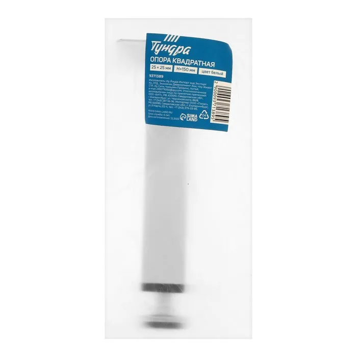 Опора квадратная OKV001WH ТУНДРА, d=25×25 мм, H=150 мм, белая — Характеристики