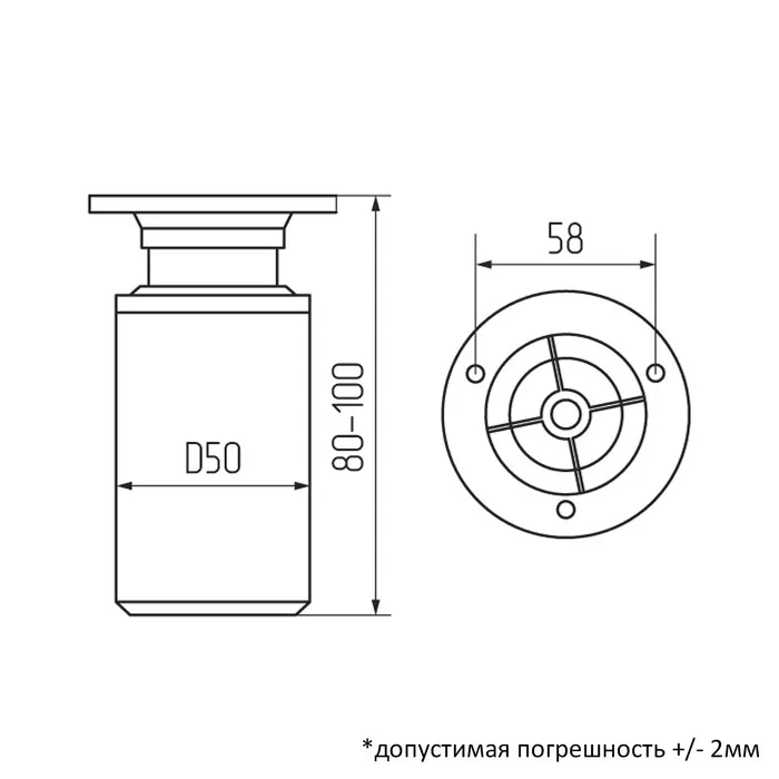 Опора регулируемая, d=50 мм, H=80-100 мм, под нержавеющую сталь — Характеристики