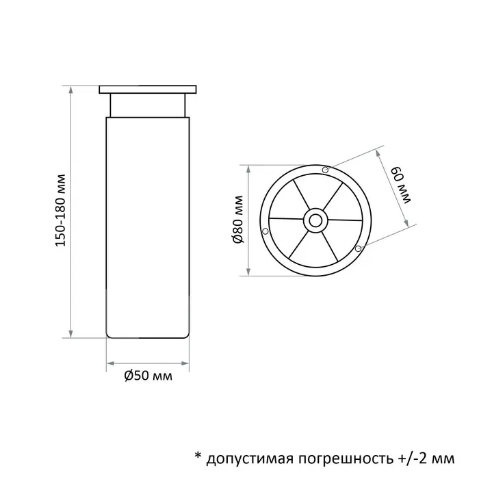 Опора регулируемая OR=001NI ТУНДРА, d=50 мм, H=150 мм, сатиновый никель — Характеристики