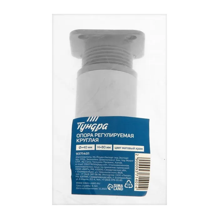 Опора регулируемая ORKR=001CR ТУНДРА, круглая, d=40, H=80 мм, цвет матовый хром — Характеристики