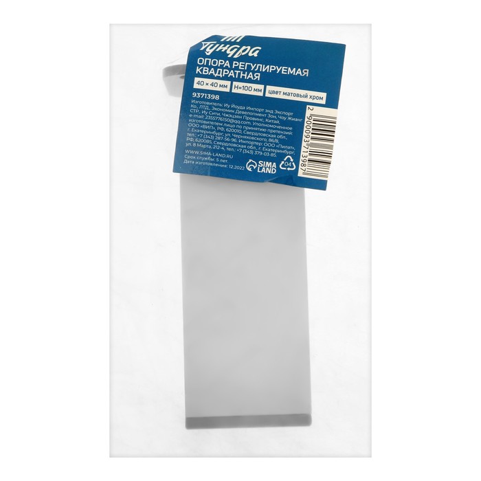Опора регулируемая ORKV001CR ТУНДРА, квадратная, 40×40, H=100 мм, цвет матовый хром — Характеристики