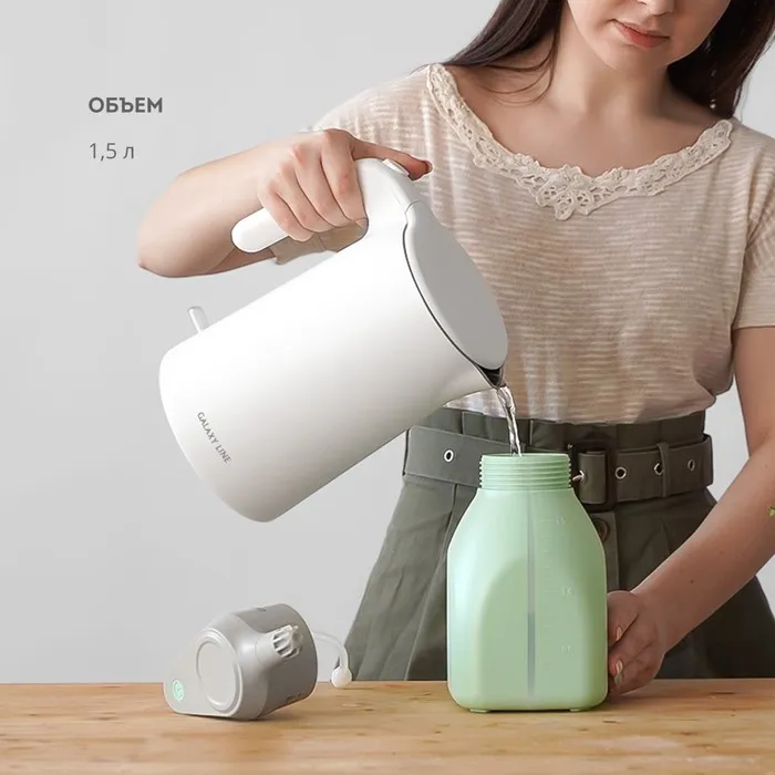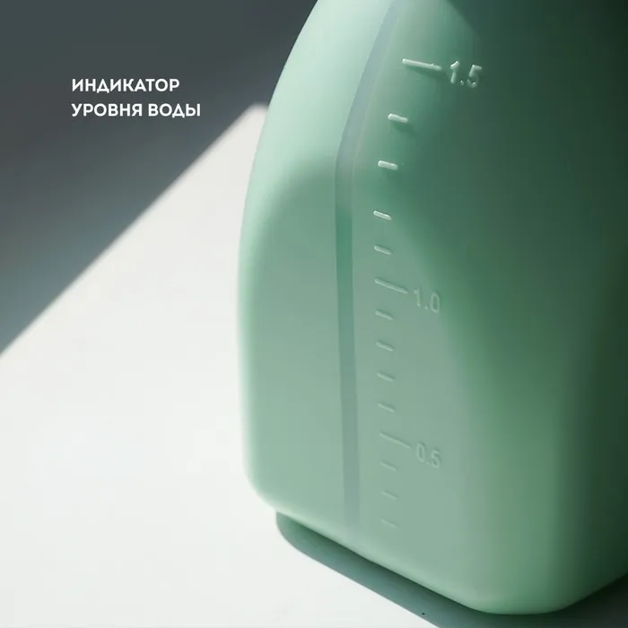Данная модель имеет оптимальный объем 1,5 литра. Для дополнительного комфорта на емкости имеется шкала уровня жидкости. Специальное уплотнительное кольцо, которое идет в комплекте, не позволяет воде протекать, обеспечивая полную герметичность.