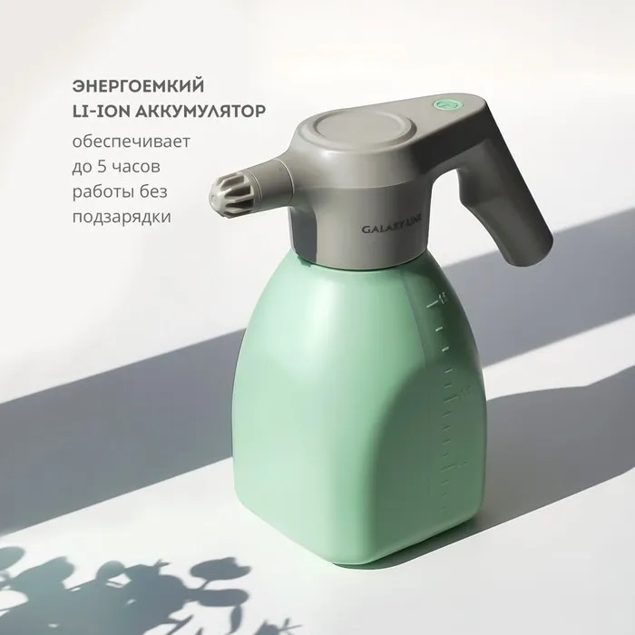 Опрыскиватель аккумуляторный Galaxy Line GL6900 подходит для полива цветов и растений, распыления химикатов и удобрений, дезинфекции, а также для домашней уборки и мытья окон. Энергоемкий Li-ion аккумулятор обеспечивает до 5 часов работы в непрерывном режиме. Аккумуляторный опрыскиватель Galaxy Line, в отличие от ручных помповых моделей, обеспечивает автоматическое распыление. Для начала работы необходимо просто нажать на кнопку включения.