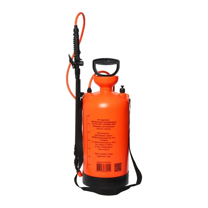 При покупке вы получите полный комплект, включающий в себя бак с цельнолитой заливной воронкой, легкий телескопический брандспойт (650-970 мм), удобную подставку и наплечный ремень для более комфортного использования. Упаковка – термоусадочная пленка. Мы уверены: вас порадует его цена, качество и длительный срок службы.